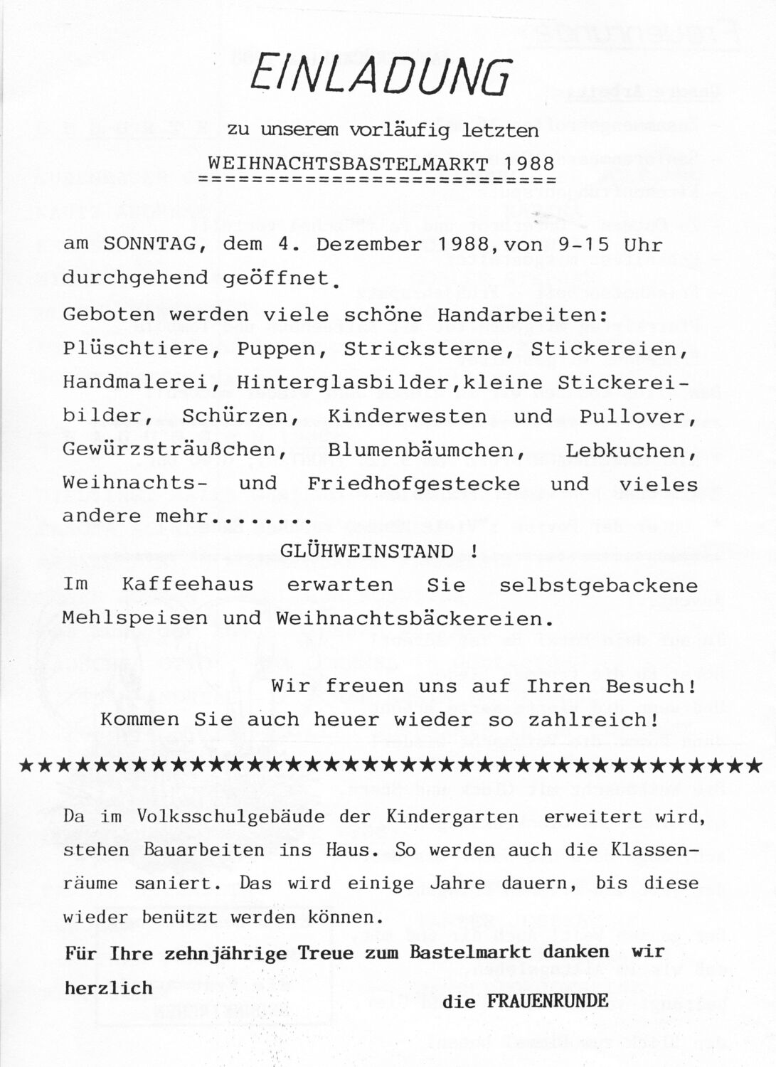 Eine Neuauflage der Bastelmärkte gab es wieder ab 2003, vorerst unter der Leitung von Elfriede Brandl, 2005 folgte ihre Tochter Sylvia Haasler als Obfrau nach. Seit 2009 bis heute leitet Käthe Mayrhofer aus Tiefenfucha die Frauenrunde.