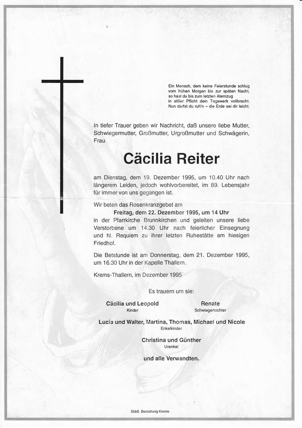 Todesanzeigen und Sterbebilder 1995
