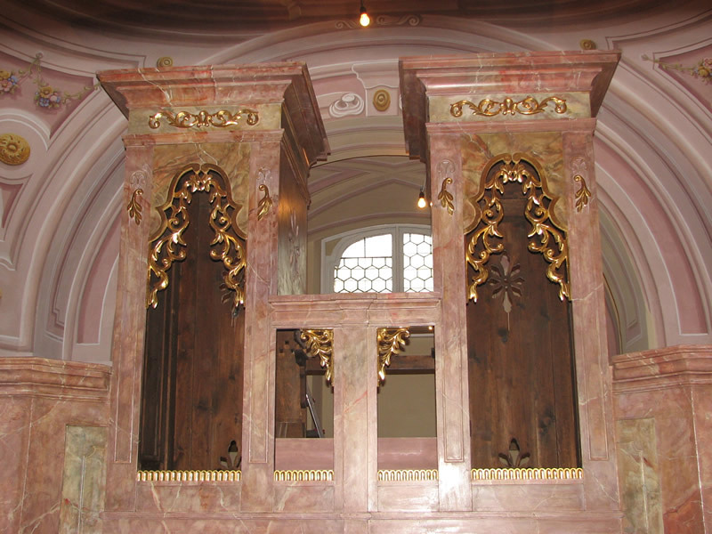 Inhalt der Galerie: Orgelkasteneinbau (Fa. Pemmer), Fußbodeneinbau Orgelempore (Fa. Kisler), Ornamente Orgelempore (Fa. Waldbauer), Christusbild restauriert zurück, Neue Treppe zur Orgelempore und zum Oratorium (Fa. Kisler) Helfer: Erhard Gründl, Anton Raffel, Robert Braunschweig, Adolf Piliater, Adolf Tanzer, Pater Maurus, Wilhelm Knett,